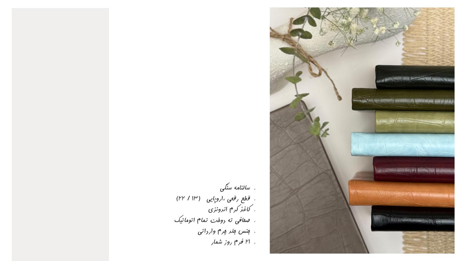 با سررسید چرم سنگی 1405 آداک، هر روزتان را به بهترین شکل برنامهریزی کنید. طراحی شیک و خاص با قطع رقعی و اروپایی، این سررسید را به انتخابی بینظیر برای افراد با سلیقه تبدیل کرده است. کیفیت بالای چرم، دوام و جذابیت بینظیری به این محصول میبخشد. همین حالا خرید کنید و روزهای خود را سازماندهی کنید!