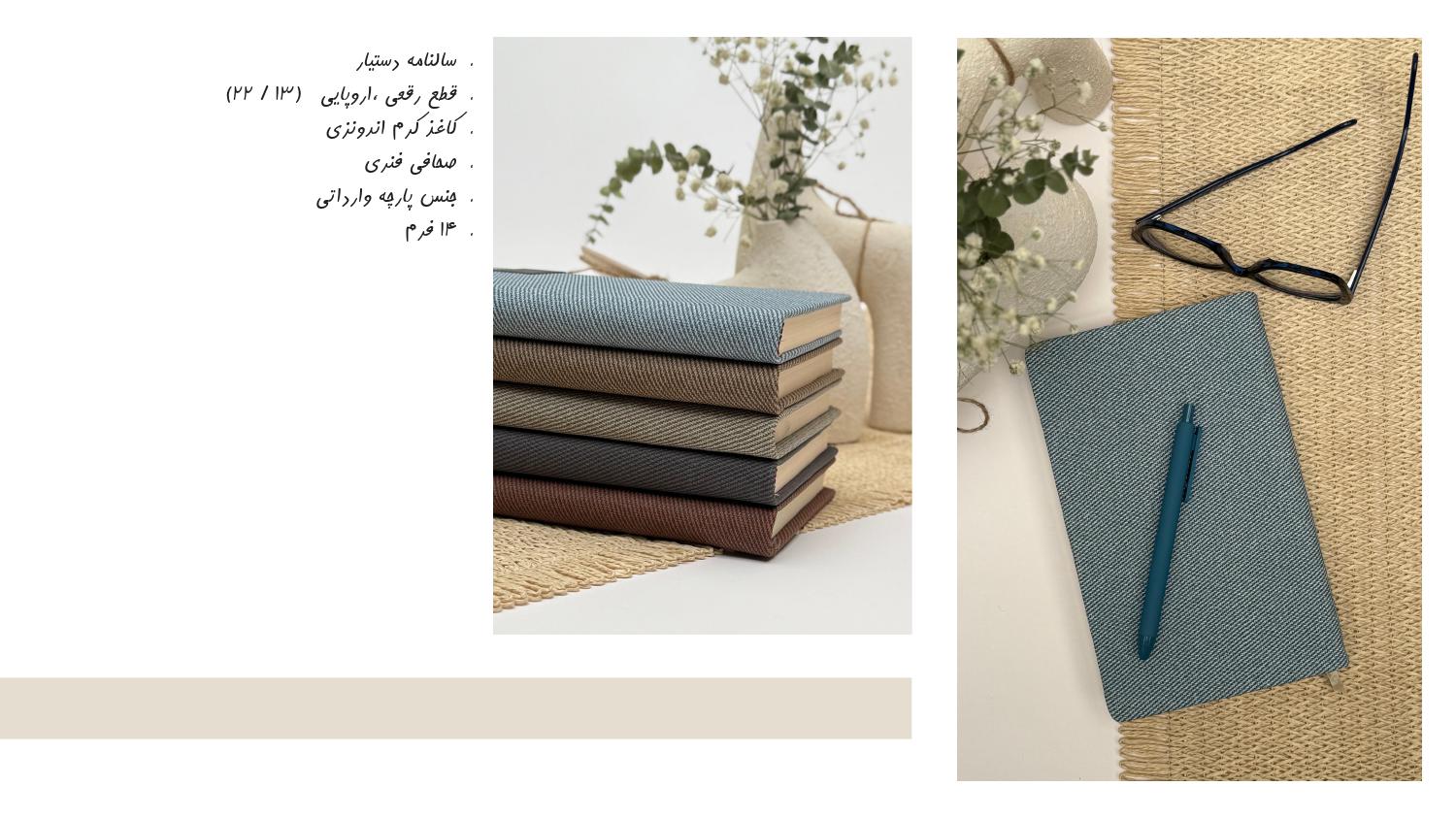 آیا به دنبال یک همراه شیک و کاربردی برای مدیریت بهتر زمان خود در سال 1405 هستید؟ سالنامه دستیار جلد پارچه آداک با قطع رقعی و اروپایی، انتخابی بینظیر برای شماست. طراحی زیبا، کیفیت عالی و اندازه مناسب، این سالنامه را به یک ابزار ضروری برای برنامهریزی و موفقیت در کارهای روزانه شما تبدیل میکند. همین حالا خرید کنید و سال جدید را با نظم و برنامهریزی بهتر آغاز کنید!