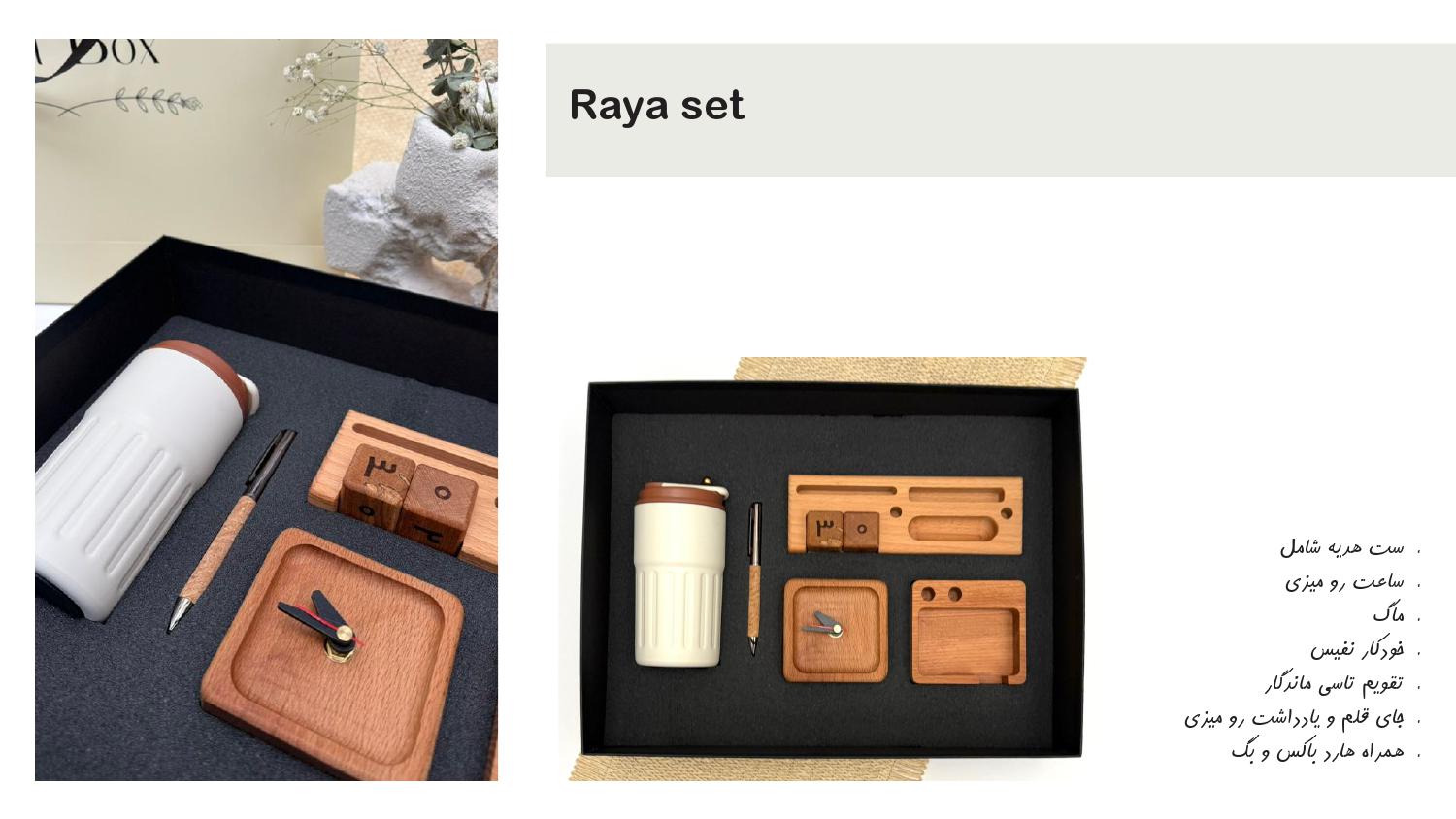 با ست هدیه چوبی 1405 آداک، لحظات خاص را جاودانه کنید! این ست خاص با طراحی زیبا و امکان حکاکی اسم و لوگو، هدیهای منحصر بهفرد برای عزیزان شماست. مناسب برای تولد، سالگرد و مناسبتهای ویژه. فرصتی برای ایجاد خاطرات ماندگار و ارزشمند. سفارش دهید و تجربهای متفاوت رقم بزنید!